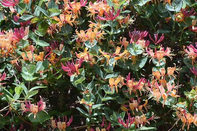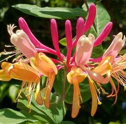 Популярная и очень обильно- и долгоцветущая лиана. Цветки трубчатые, розово-красные с жёлтой серединкой, слегка ароматные. Цветёт с июня по сентябрь. Дорастает до 3 м (1м в год).Растение очень быстро растет, поэтому, несмотря на некоторое обмерзание в зимнее время однолетних побегов, форма хорошо восстанавливается, а поскольку цветение происходит на побегах текущего года, его декоративность сохраняется.