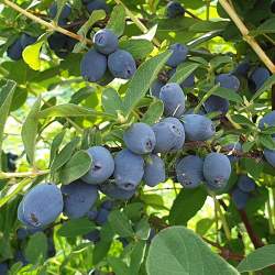Жимолость Strawberry Sensation (Строберри Сенсейшн). Сорт принадлежит к группе Blue Treasure. Куст куполовидный, сильнорослый, хорошо разветвляющийся, высотой до 150 см и шириной до 150 см. Плоды крупные, сладкие и ароматные, длиной около 2 см, эллиптической, на концах закругленной формы, иногда даже шаровидные, рубчик сухой.