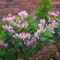 Жимолость татарская. Стройный куст высотой до 250-300 см. В Подмосковье цветет с конца мая в течение двух недель. Бутоны розовые, цветки крупные, пятилепестковые. В период цветения куст неотразим.
