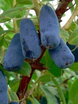 Плоды голубовато-сизые, по форме вытянутые, с тупой верхушкой, плотной мякотью, длиной около 2 см. По вкусу кисло-сладкие, ароматные, с привкусом земляники. Вкус жимолости Волхова специалисты называют десертным.
