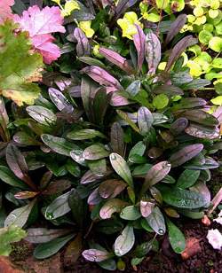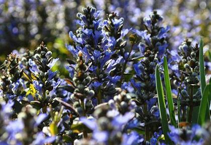 Живучка Chocolate Chips (Чоклейт Чипс). Многолетнее, неприхотливое, почвопокровное растение. Листья зимующие. Замена листьев происходит в течение весны следующего года, процесс постоянный, и поэтому малозаметный. Растение никогда не теряет своей декоративности. Цветки голубые.